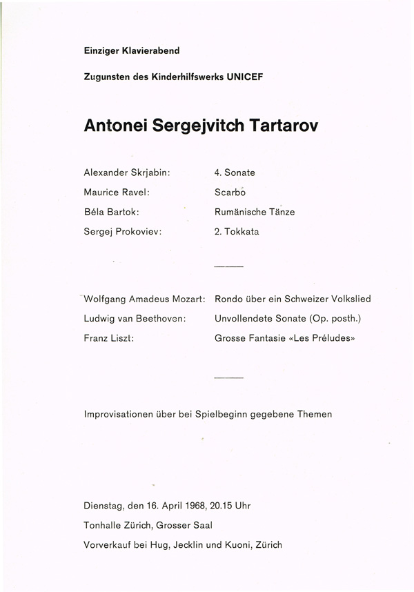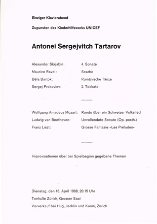 I conoscitori, consapevoli dell'impegno richiesto per l'esecuzione dei brani di Skrjabin, Ravel, Bartok e Prokoviev, irti di difficoltà tecniche e interpretative, annoverarono Tartarov nel firmamento dei grandi virtuosi ancora prima di averlo ascoltato...